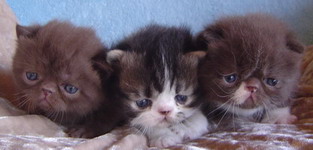 tabby/white Pers, choc/whiteEx a tabby, and a black, all Exotics