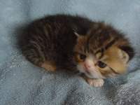 I would have preferred to have kept the chocolate shorthair boy, but DNA testing showed that only the girl carried cinnamon, so ROSIMORN FANCY'S LEGACY (Gen3) ( Lacey) joined the cinnamon programme, despite being a longhair! She was a really odd looking kitten with a big head out of proportion to the rest of her, and having a pronounced fever coat from the birth stress, so she looked as though she was a high grade black smoke.