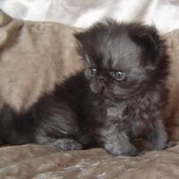 Unfortunately her pregnancy ended in a caesarian section, and a spay There were two kittens born. A chocolate SH boy and a black LH girl. Photos below at 4 weeks of age.