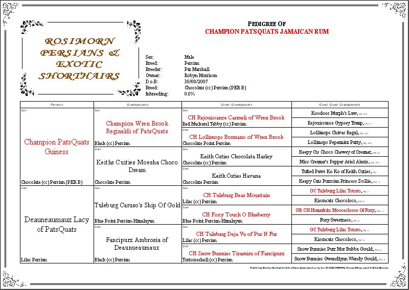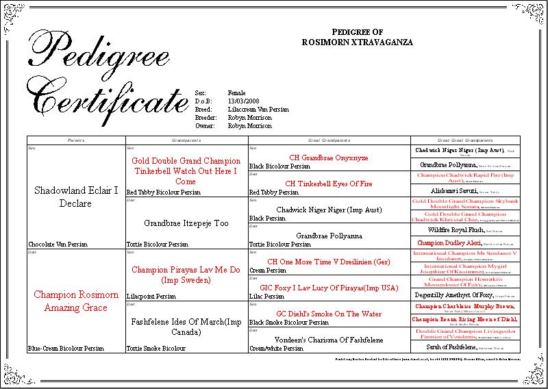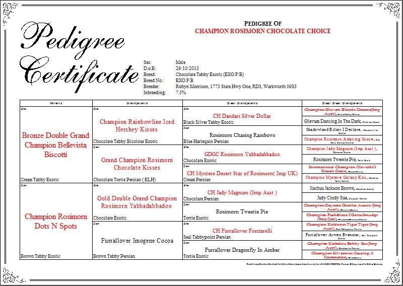 existing New Zealand and USA pedigrees. Lovely