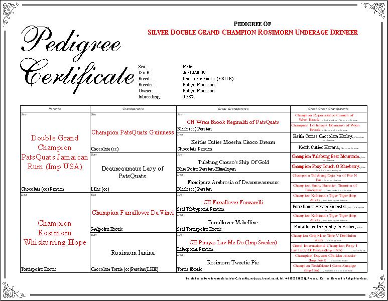 Sire: GoldDbleGC Rosimorn Underage Drinker - Chocolate