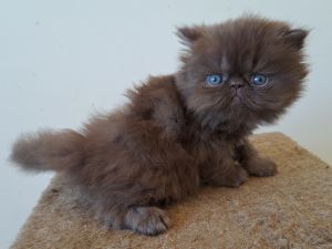 I specialise in the chocolate and lilac colours, but because these are recessive genes I do produce all the other range of colours - blacks, blues, and all the different tortie variations, in tabbies, solids, silvers, and bicolours, in both coat lengths, Persian and Exotic.