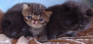 tabby/white Pers, choc/whiteEx a tabby, and a black, all Exotics