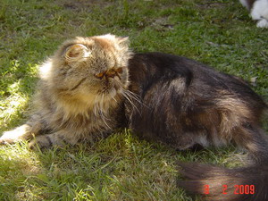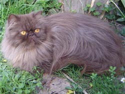 When I first began breeding chocolates back in 1998, I knew about the cinnamon gene that was at the same locus as well, and the thought did cross my mind " I wonder what a cinnamon Persian or Exotic would look like?" But at that stage I was fully committed to my chocolates, still learning about them and still trying to get some reasonable type into my cats. I knew I didn't have either the energy or the room for the extra cats that would be needed for another colour programme.