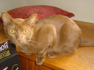 Atacat Ustinov was a cinnamon Mandalay, which in our New Zealand registry is a solid colour (non pointed) Burmese. It was the first time I had really gotten close up to the cinnamon colour and just like my ongoing love affair with chocolates, it was again love at first sight.